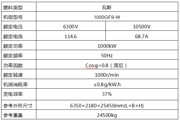 1000kW瓦斯發電機組